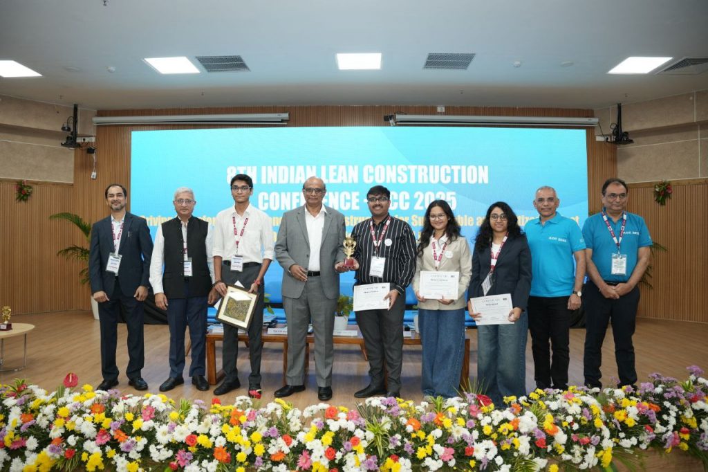 We are delighted to announce that our students Dhyey Gondalia, Bhairavi Valodara, Nirali Mistri, Harshit Jhaveri, and Yayin Parmar have achieved an outstanding milestone at the Indian Lean Construction Competition during the Indian Lean Construction Conference (ILCC) 2025, held at IIT Tirupati.