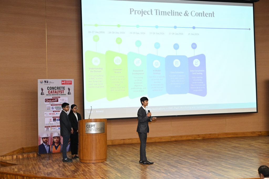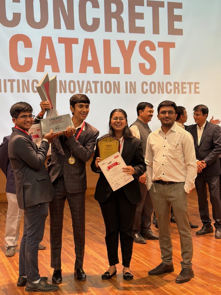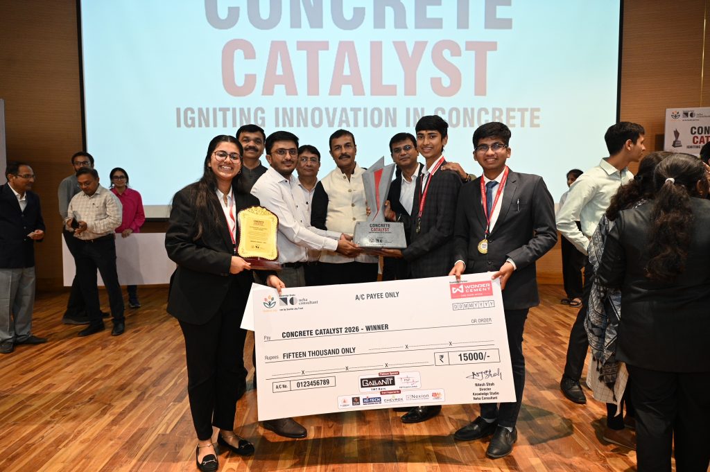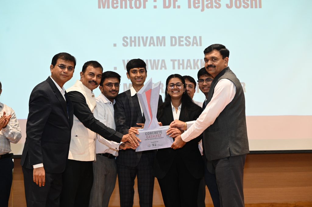 The Civil Engineering Department, Nirma University, proudly announces that our student team has secured First Position in both the Preliminary Round and the Final Cluster Round of the Concrete Catalyst – Ahmedabad (AMD) Cluster.